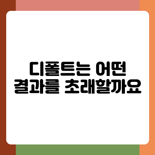 디폴트는 개인과 국가 모두에게 심각한 결과를 가져옵니다. 개인의 경우, 신용등급 하락, 추가적인 금융 서비스 이용 제한, 재산 압류 등의 불이익을 받을 수 있죠. 더 심각한 경우에는 파산까지 이어질 수도 있습니다. 국가의 경우에는 이미 설명했듯이 국제적인 금융 시장의 불안정, 경제 성장 둔화, 국민 생활 수준 저하 등 심각한 사회·경제적 혼란이 야기될 수 있어요. 따라서 디폴트 예방을 위한 노력이 매우 중요합니다.