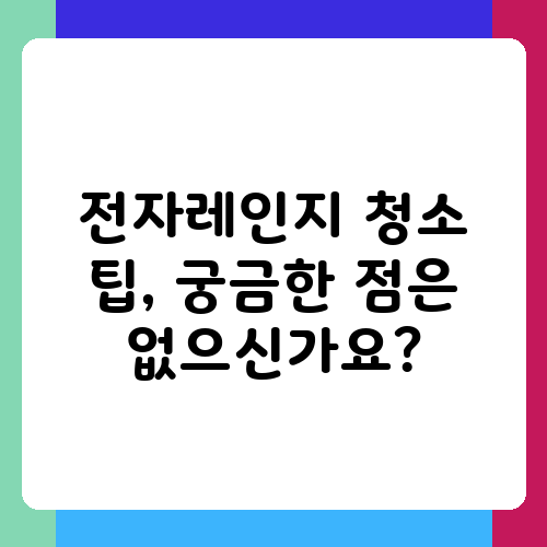 전자레인지 청소에 대해 궁금한 점이 있다면 언제든지 질문해주세요. 더욱 효과적인 청소 방법이나 주방 청소 팁을 공유하고 싶습니다. 여러분의 소중한 주방을 깨끗하고 쾌적하게 유지하는데 도움이 될 수 있도록 최선을 다하겠습니다. 오늘 소개해 드린 방법들을 활용해서 깨끗하고 상쾌한 주방 환경을 만들어 보세요! 이제 걱정 없이 전자레인지를 사용할 수 있겠죠? 주방 청소는 어렵지 않다는 것을 알게 되셨으면 좋겠습니다.
