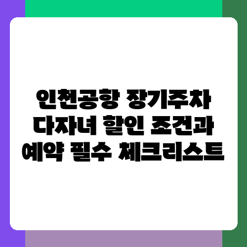 인천공항 이용 계획 세우셨나요? 장기 주차 계획까지 꼼꼼하게 준비하셨다면 다자녀 가정이라면 놓칠 수 없는 혜택이 있습니다. 바로 인천공항 장기주차 다자녀 할인이죠. 하지만 어떤 조건이 적용되는지, 어떻게 예약해야 할인을 받을 수 있는지 궁금하실 텐데요. 이 글에서는 인천공항 장기주차 다자녀 할인에 대한 모든 것을 자세히 알려드리겠습니다. 알찬 정보 얻어가셔서 스마트하게 인천공항 이용하세요!