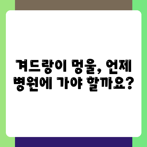 겨드랑이 멍울이 발견되었을 때 언제 병원을 방문해야 하는지 궁금하시죠? 멍울이 크기가 커지거나, 점점 아파지거나, 주변 피부가 붉어지거나, 열이 나거나, 체중 감소나 야간 발한과 같은 다른 증상이 동반될 경우 즉시 병원을 방문하셔야 합니다. 또한, 멍울이 단단하거나, 움직이지 않거나, 피부에 붙어 있는 경우에도 의심해 볼 필요가 있습니다. 물론, 대부분의 겨드랑이 멍울은 심각한 질병과 무관하지만, 안전을 위해 전문의의 진료를 받는 것이 중요합니다. 무엇보다 중요한 것은 자신의 몸에 대해 관심을 가지고 변화를 주의 깊게 살펴보는 것입니다. 작은 변화라도 소홀히 하지 않고, 빠른 시간 안에 의료진과 상담하는 것이 최선의 방법입니다.