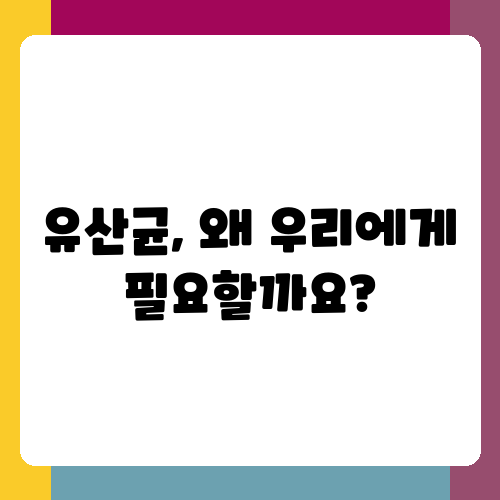 우리 장 속에는 수많은 유익균과 유해균이 공존하고 있습니다. 유익균이 우세하면 장 건강이 좋아지고 면역력도 향상되지만, 유해균이 많아지면 소화불량, 변비, 설사 등 다양한 문제가 생길 수 있어요. 유산균은 이러한 유익균의 대표주자로서 장내 환경을 건강하게 유지하는 데 큰 도움을 준다고 합니다. 특히, 요즘처럼 스트레스를 많이 받고 불규칙적인 식생활을 하는 현대인들에게 유산균은 더욱 중요하다고 생각해요. 유산균이 장내 유해균의 증식을 억제하고, 장 운동을 활성화시켜 변비 예방에도 도움을 주고, 면역 세포의 활동을 증진시켜 면역력 강화에도 기여한다고 알려져 있거든요. 또한, 유산균은 비타민 합성에도 관여하여 건강한 신체 유지에 꼭 필요한 영양소를 공급하는 데 기여합니다. 이처럼 유산균은 단순한 건강식품이 아니라 우리 몸의 건강을 지키는 중요한 역할을 수행하고 있습니다. 저도 예전에 소화가 잘 안 되고 피부 트러블이 심했었는데, 유산균을 꾸준히 섭취하면서 증상이 많이 완화되었어요.