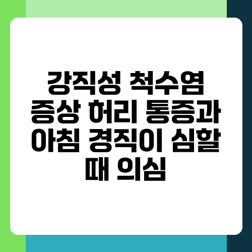 이 글이 강직성 척수염으로 인한 허리 통증과 아침 경직으로 고통받는 분들께 조금이나마 도움이 되었으면 합니다. 하지만 이 글의 정보는 전문적인 의학적 조언을 대체할 수 없습니다. 증상이 지속되거나 악화되는 경우, 반드시 의사와 상담하여 정확한 진단과 치료를 받으세요. 건강한 삶을 위해 꾸준한 관리와 주의가 필요하다는 것을 잊지 마세요!