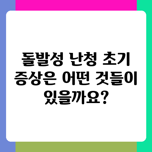 돌발성 난청 초기 증상은 어떤 것들이 있을까요?