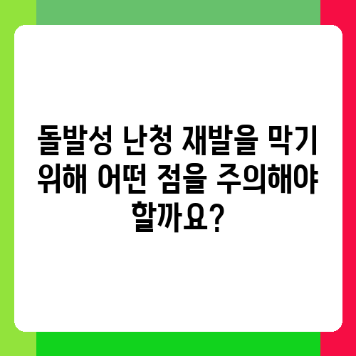 돌발성 난청 재발을 막기 위해 어떤 점을 주의해야 할까요?