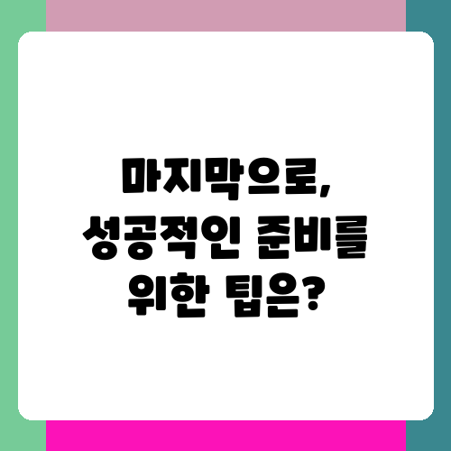마지막으로, 성공적인 시험 준비를 위해서는 체계적인 계획과 꾸준한 노력이 필수적입니다. 단기간에 모든 것을 완벽하게 준비하기는 어렵습니다. 장기적인 관점에서 꾸준히 노력하는 것이 중요하며, 자신에게 맞는 학습 방법과 시간 관리 전략을 세우는 것이 중요합니다. 힘들 때는 주변 사람들에게 도움을 요청하고 자신을 믿고 포기하지 않으면 분명 좋은 결과를 얻을 수 있을 것입니다. 지금까지 설명드린 내용들을 바탕으로 자신만의 효과적인 준비 전략을 세우고 목표를 향해 나아가시길 바랍니다. 여러분의 꿈을 응원합니다!
